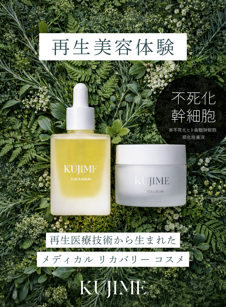 それがついに、再生因子の発見・登場と共に、美容ドクターたちも自信を持って送り出せる「医療レベル」世界特許成分クリーム「FUSICA CREAM」「FUSICA SERUM」 が完成しました。